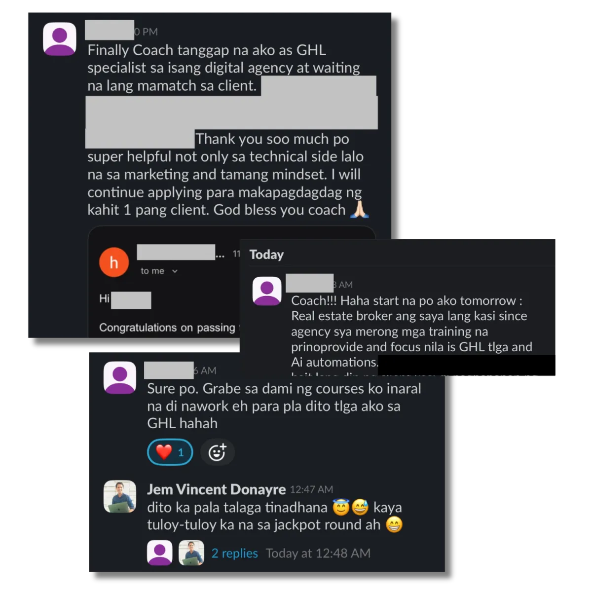 Like this student. She just got hired as a GHL Specialist in a digital agency.