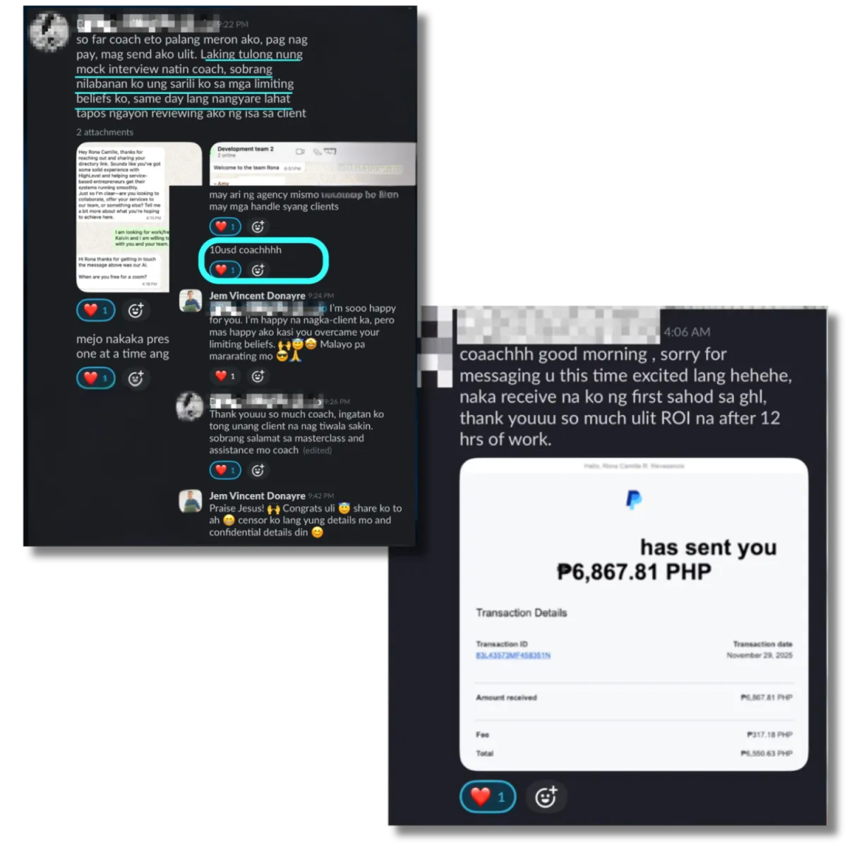 A few days later, she messaged me at 4AM because she was so excited. She had just received her first GHL salary after only 12 hours of work.